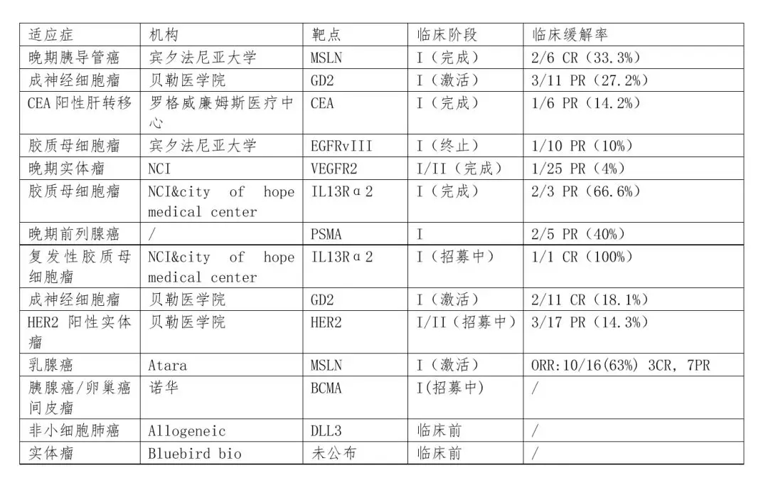 表5 國(guó)際上獲得實(shí)體瘤CAR-T臨床批件的機(jī)構(gòu)