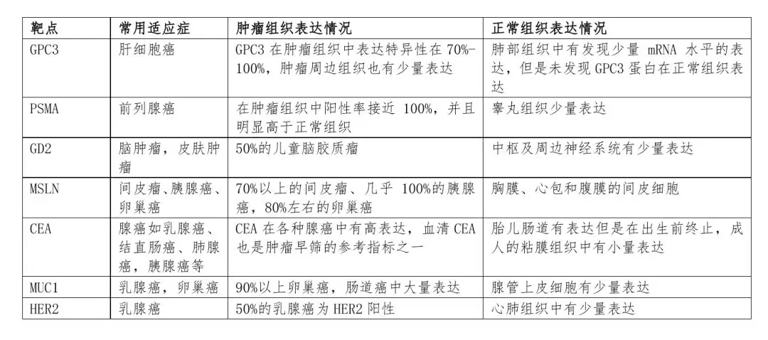 從上表來(lái)看,除了GPC3之外,其他蛋白抗原都存在與人體正常組織中,因此控制CAR-T的on-target毒性成為非常關(guān)鍵的因素。根據(jù)臨床推進(jìn)來(lái)看,可以關(guān)注MSLN,GPC3以及新型腫瘤特異性靶點(diǎn)在臨床上的進(jìn)展。