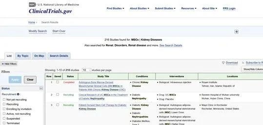 截止目前為止,美國國立衛(wèi)生數(shù)據(jù)庫(ClinicalTrials.gov)收錄的間充質(zhì)干細胞治療腎臟疾病的臨床試驗有兩百多項。