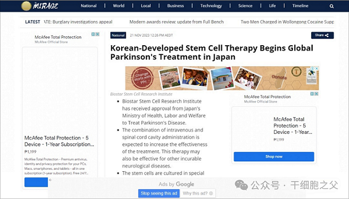 2023 年 11 月 20 日 ,韓國(guó)成體干細(xì)胞研究所 Biostar 干細(xì)胞研究所(所長(zhǎng):Jeongchan Ra 博士)宣布,通過(guò)給予自體干細(xì)胞治療帕金森病的再生醫(yī)學(xué)技術(shù)使用專利技術(shù)在靜脈和脊髓腔內(nèi)培養(yǎng)的脂肪干細(xì)胞已獲得日本厚生省的批準(zhǔn),并將于 12 月在東京新宿診所開(kāi)始治療。