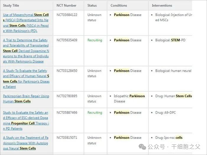 截至目前,在美國(guó)國(guó)立衛(wèi)生研究院的臨床試驗(yàn)注冊(cè)庫(kù)clinicaltrials.gov網(wǎng)站上注冊(cè)的有關(guān)干細(xì)胞治療帕金森病的臨床研究近60項(xiàng)。